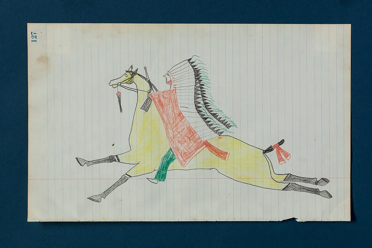 This ledger drawing embodies all the action and bravery of the days of the Plains Indian Wars, when courageous Lakota warriors defended their People from the encroachment of the United States and other Plains tribes. This is truly a wonderful piece of art and history.